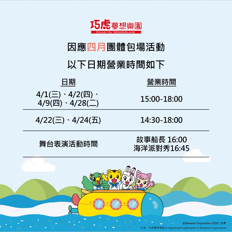【巧虎夢想樂園公告】